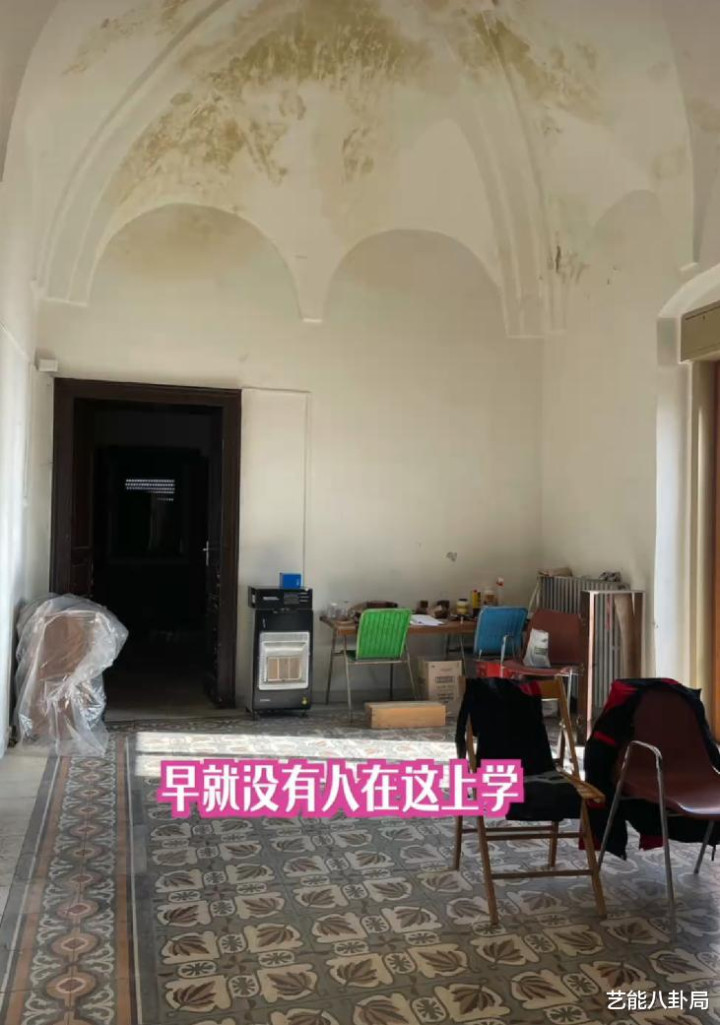 教室被爆改成卧室,地板上是原始的花砖,像铺了一层地毯。